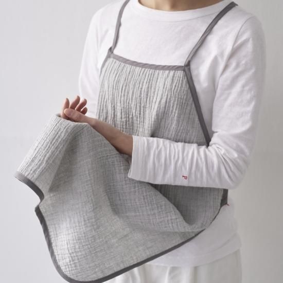 パイピングエプロン WG+pouch/ piping apron WG+pouchダブルガーゼのポーチ付きパイピングエプロン