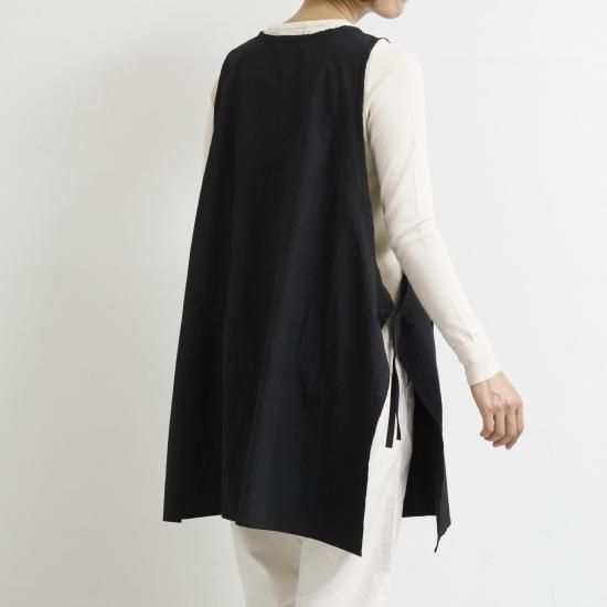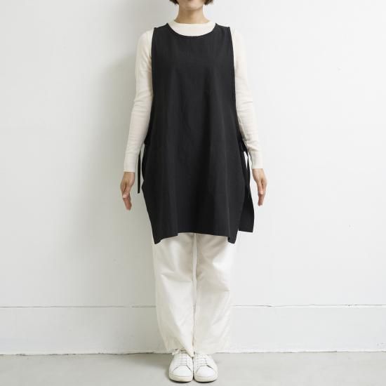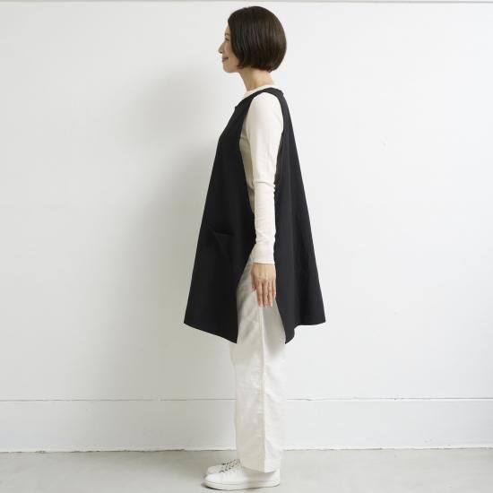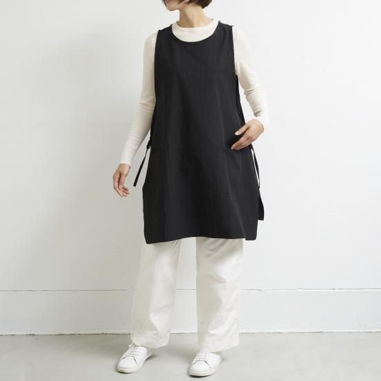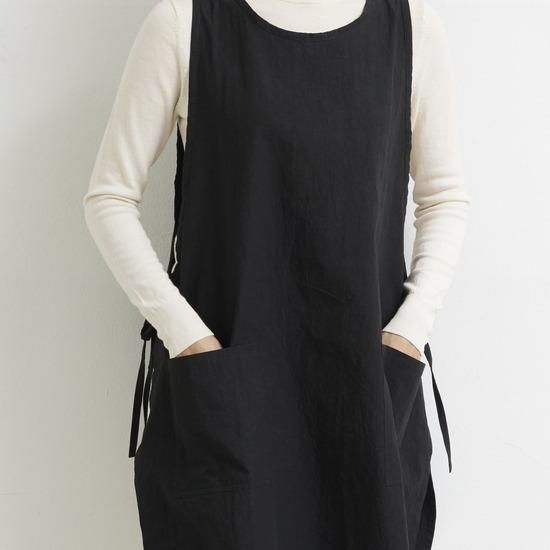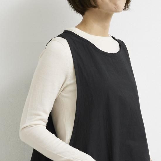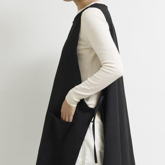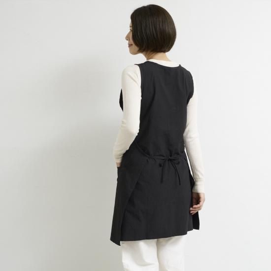 プルオーバーのようなスタイルで着方のアレンジが出来るエプロン