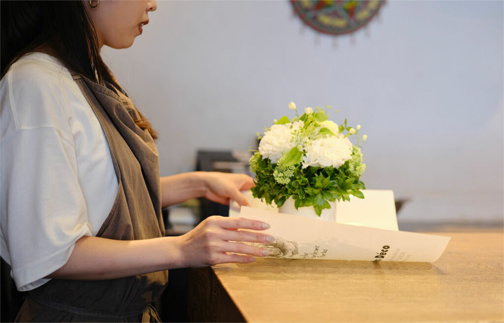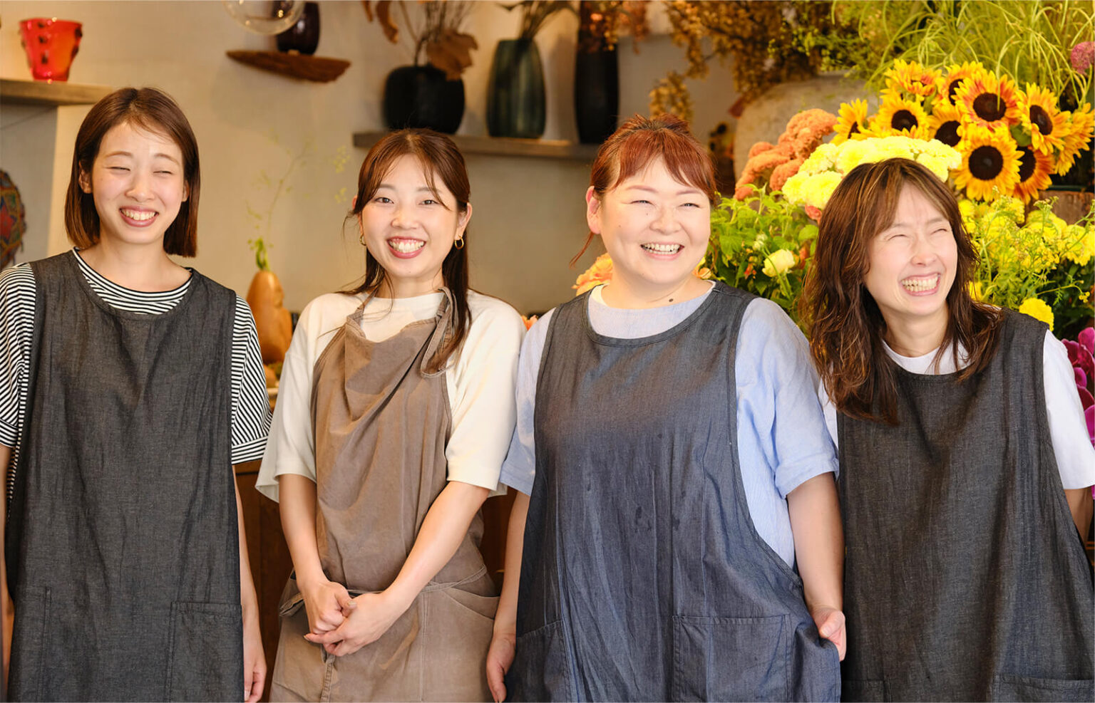 店内を訪れると、花の香りとともにスタッフの笑顔が迎えてくれます。