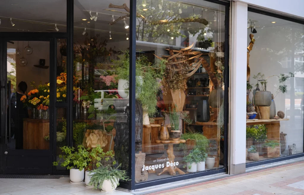 JR芦屋駅北口からすぐ、光あふれる空間に季節の花々が咲き誇るフラワーショップ「Jacques Deco」