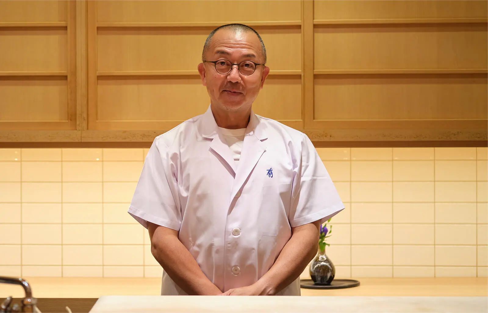 そして営業が始まると、白衣に着替え、凛とした装いでお客様を迎える。